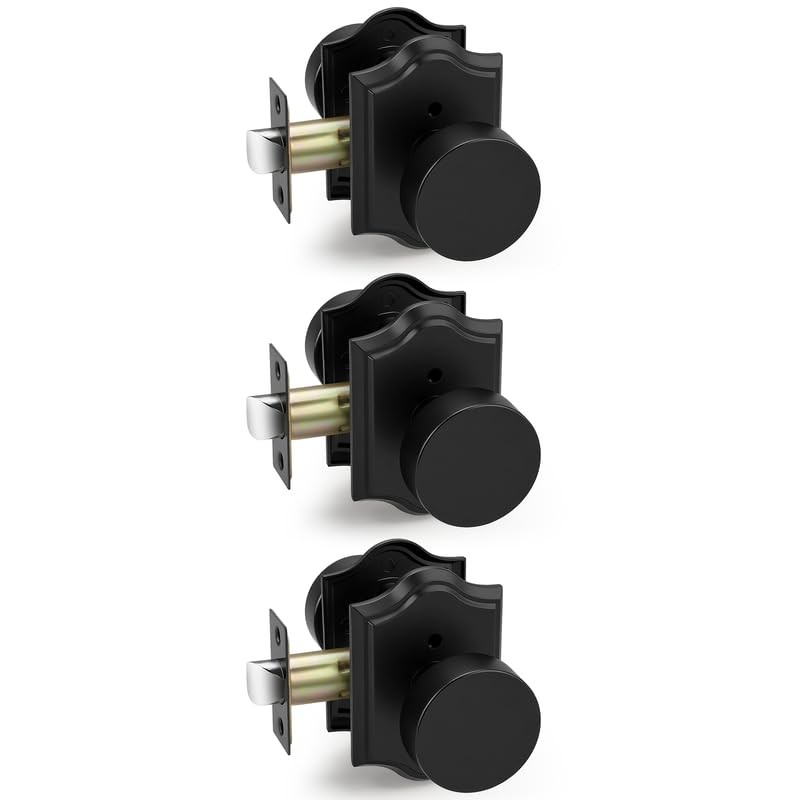 Probrico Black Door Knobs Interior, Bathroom/Bedroom Door Locks, Privacy Door Knobs with Lock, Keyless Door Locksets, 3 Pack