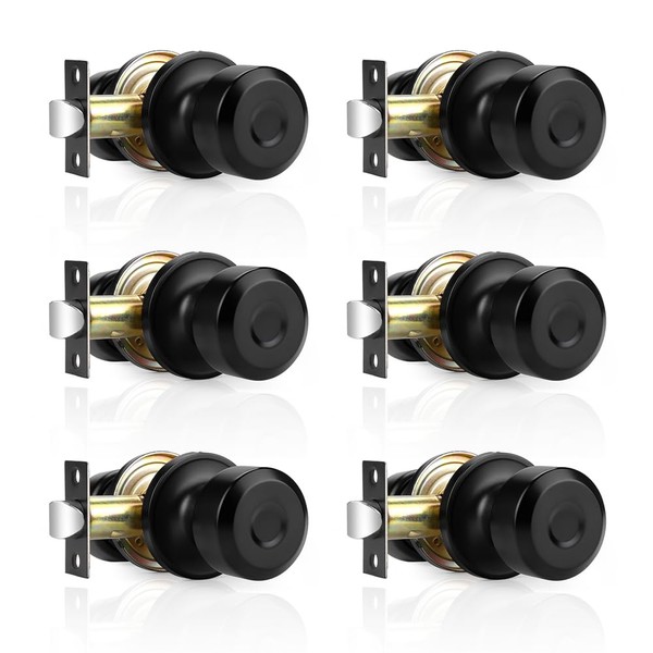 Probrico Black Passage Door Knobs Closet Hallway Door Knobs No Lock 6 Pack Interior Door Handles Without Key