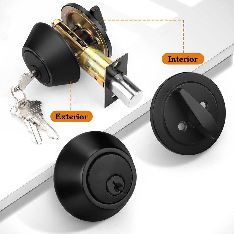About the single deadbolt,you can use keys exterior, and use thumb button inside of the door. Each Package Listing: