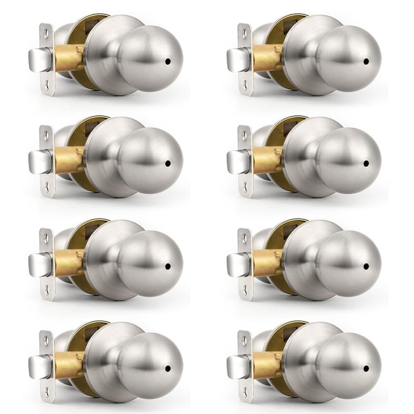 Probrico Brushed Nickel Door Knob Without Key Privacy Door Knob Bedroom/Bathroom Door Knobs Interior Keyless Door Knobs 8 Pack