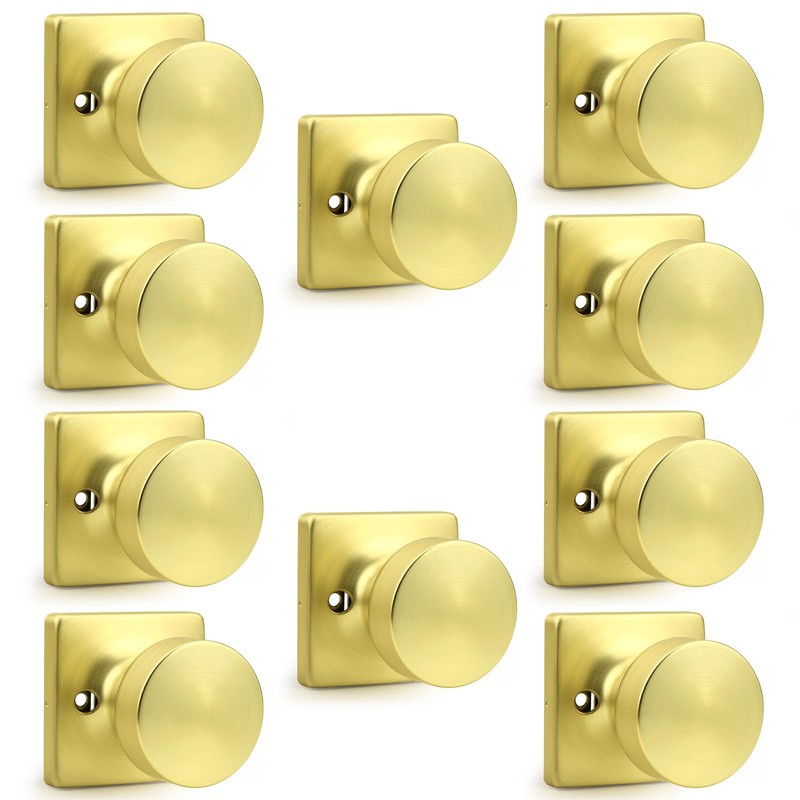 Probrico Bulk Dummy Door Knobs Interior 10 Pack, Brushed Gold Round Ball Door Handles for Closet, Modern Single Sided Dummy Door Knobs Without Key
