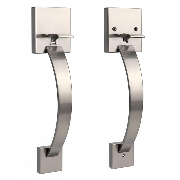 Probrico Double Sided Satin Nickel Front Door Handle,Exterior/Interior Keyless Square Front Door Handleset,Entry Handleset with No Lock,1Pack