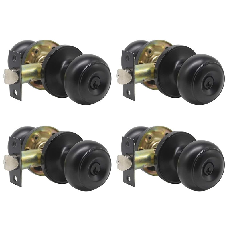 Probrico Keyed Entry Door Locks Black Door Knobs, Interior Door Knob with Lock and Key, Individual Keys (Not Keyed Alike), 4 Pack