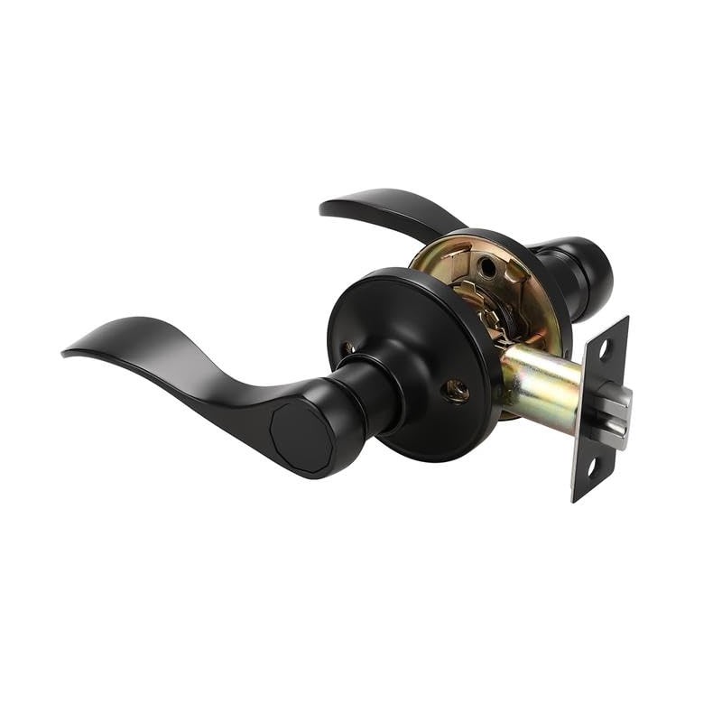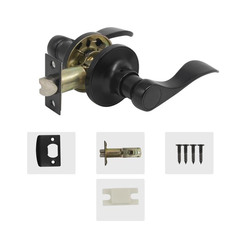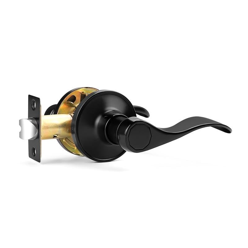 - 【Specifications】Wave and drop shape; Zinc Alloy and metal; matte black finish; Keyless modern passage door handle. Confirm with ANSI Grade 3, Exceeds 200,000 cycles