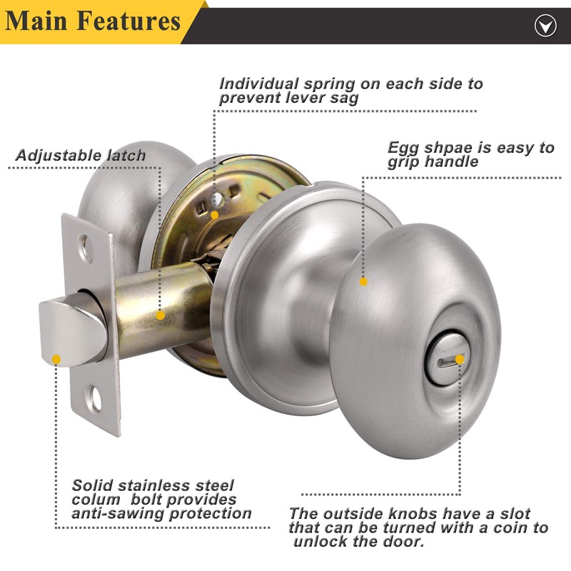 - 【Function】:For use on interior doors where a privacy locking function is required, such as a bedroom or bathroom