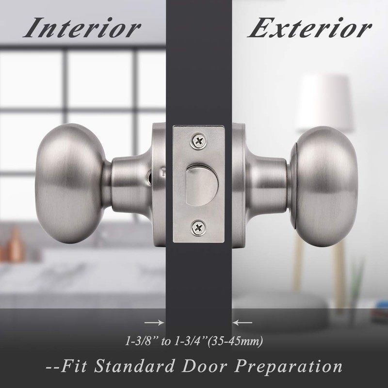 Probrico Oval Brushed Nickel Privacy Door Knobs, Keyless Interior Door Locks, Egg Shape Bath/Bed Door Handles, 3 Pack
