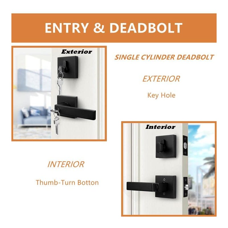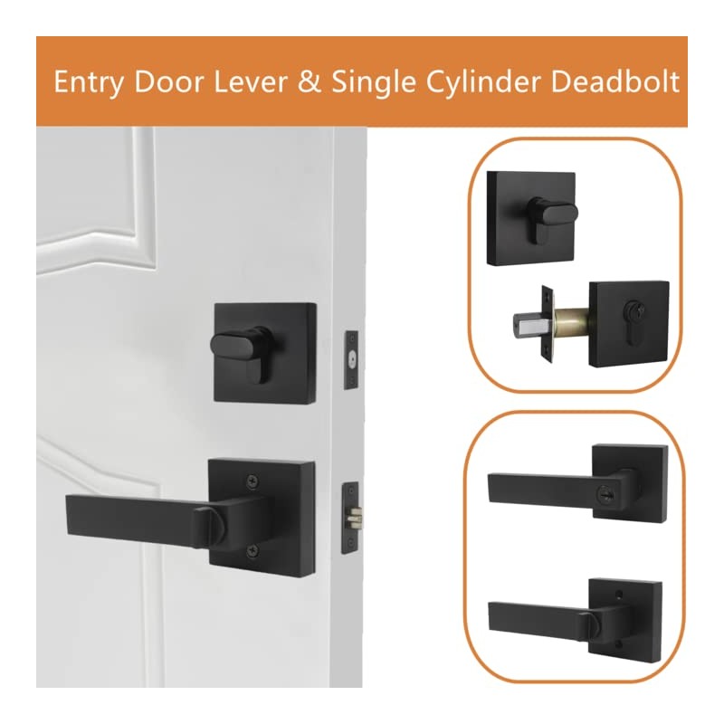 Probrico Probrico Square Entry Levers and Single Cylinder Deadbolts Combo Pac...