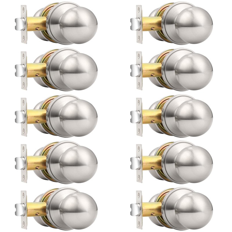 Probrico Round Brushed Nickel Passage Door Knobs Interior Door Handles for Hallway Closet, Keyless Passage Door Lock, 10Pack