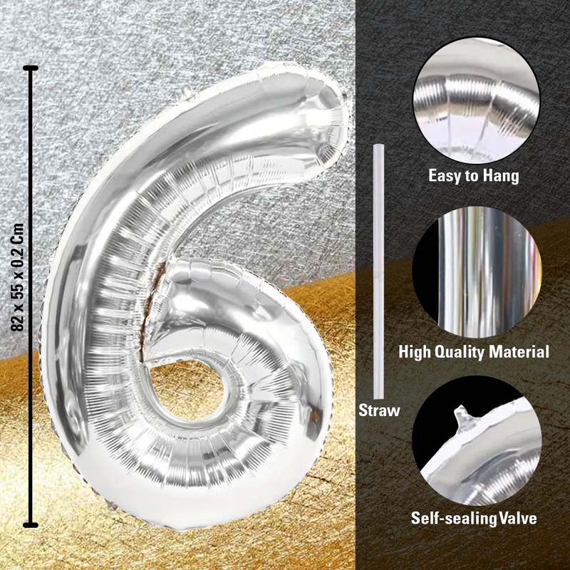 - SPECIFICATIONS - 32 Inch / 82 Cm Metallic Foil Number Helium Inflatable Balloons - Material: Metal Foil, PVC - Dimensions: (LxWxH) 82 x 55 x 0.2 Cm Approx (not inflated and width may vary depending on Number Choice) - Features: Comes with a Plastic Straw for Deflating & Inflating / Blowing Air or Gas, Reusable, long-lasting, Tiny Packaging for easy storage and reuse - Colors: Silver, Pink, Rose Gold, Black, Red, Blue