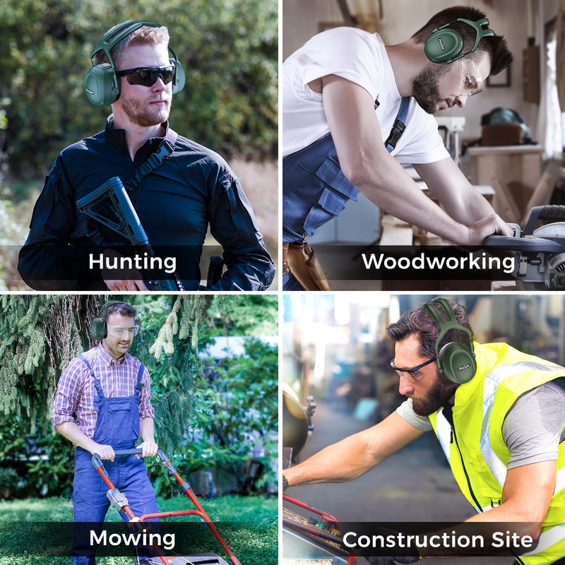 ProCase Extra Large SNR 37dB Noise Cancelling Headphones, NRR 30dB Hearing Protection Ear Muffs for Adults Noise Reduction, Wide Size Adjustment and Comfortable -Green