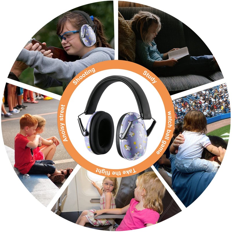 - Uses: These kids earmuffs can effectively reduce noise, protecting your child's ears from loud and noise from fireworks, live concerts, sporting events, etc. Can also be used for children with hyper-hearing and autism. It is also effective for isolating sound while studying, reading and sleeping