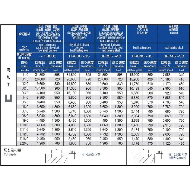 • Compatible working materials: HRC50 or less, carbon steel, tool steel, cast iron, hardened steel