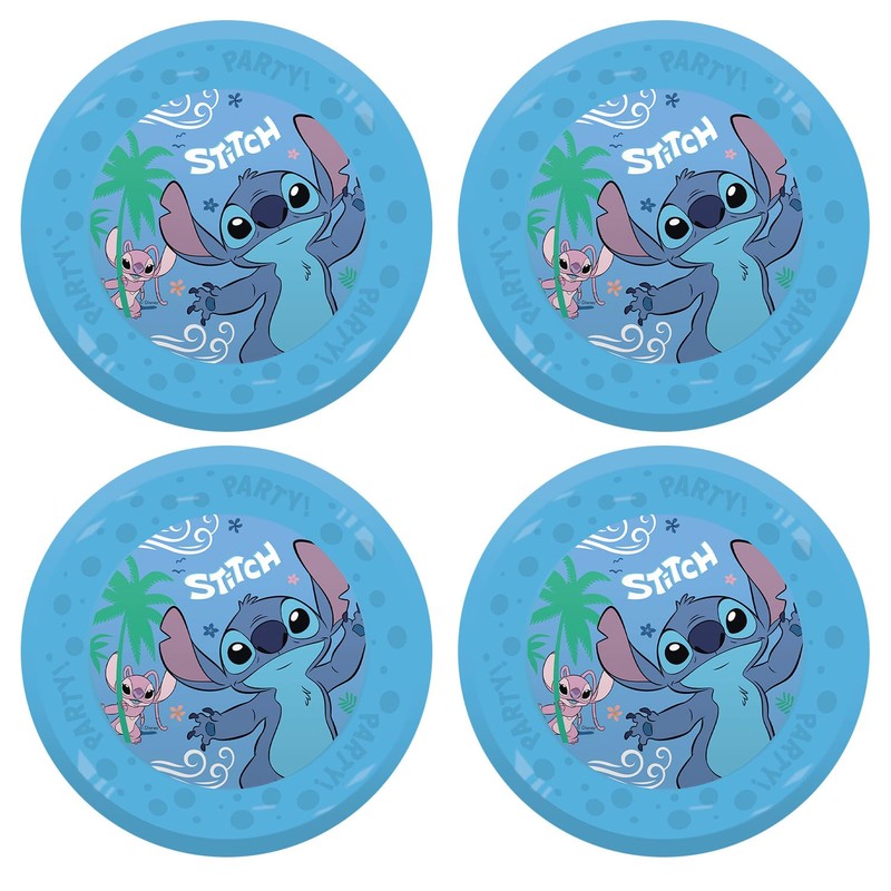 Procos - Stitch and Angel Plastic Plates 4 Pack Reusable Party Tableware for Birthday or Theme Party