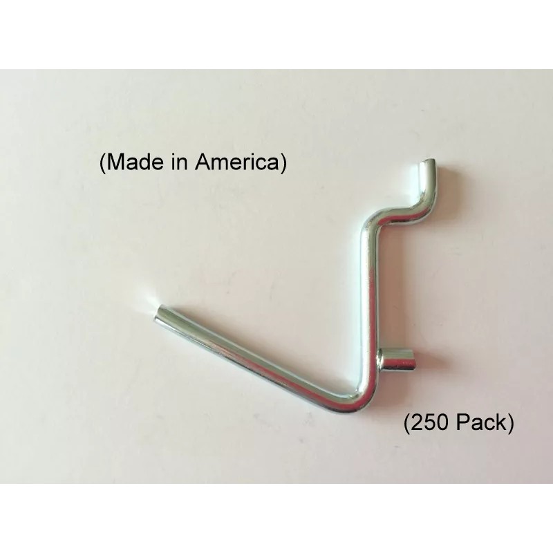 (250 PACK) Angle 1 1/2 inch All Metal Peg Hooks For 1/8 to 1/4 Inch Pegboard. Made in America.Diameter: .142 inches. Self StabilizingA high quality durable pegboard hook built to last. Fits just about any type of pegboard and will give you years of service. Visit our Website for more Selections, Sizes and Bulk Pricing. Get Hooked On hooksalesdirect Normal 0 false false false EN-US X-NONE X-NONE /* Style Definitions */ table.MsoNormalTable {mso-style-name:"Table Normal"; mso-tstyle-rowband-size:0; mso-tstyle-colband-size:0; mso-style-noshow:yes; mso-style-priority:99; mso-style-parent:""; mso-padding-alt:0in 5.4pt 0in 5.4pt; mso-para-margin-top:0in; mso-para-margin-right:0in; mso-para-margin-bottom:10.0pt; mso-para-margin-left:0in; line-height:115%; mso-pagination:widow-orphan; font-size:11.0pt; font-family:"Calibri","sans-serif"; mso-ascii-font-family:Calibri; mso-ascii-theme-font:minor-latin; mso-hansi-font-family:Calibri; mso-hansi-theme-font:minor-latin;}A high quality durable pegboard hook built to last. Fits just about any type of pegboard and will give you years of service.