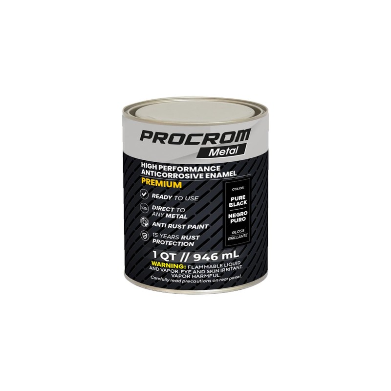 Procrom Premium is a high performance paint, ready to open and paint indoors and outdoors. DTM Professional finish without the need for a primer. Direct adhesion on ferrous and non-ferrous metals: iron, steel, aluminum, stainless steel, electro zinc, gel coat and galvanized surfaces. Long-lasting protection, the surface remains intact for more than 15 years. Resistance to rust, chemicals and UV sun damage. Quick drying that saves time. Repaintable in less than 1h.