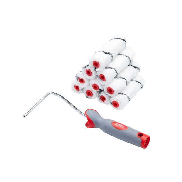 ProDec Advance 11 piece Medium Pile 4" Microfibre Mini Paint Rollers with Frame for Emulsion Paints and Woodstains