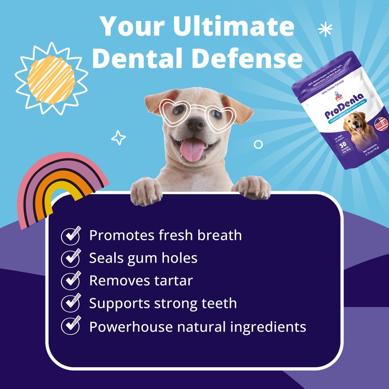 - The Ultimate Defense Against Leaky Gums: ProDenta is a quality dog dental care supplement for dogs against multiple oral health issues. This pet dental powder is not your average dog plaque and tartar remover. It goes above and beyond by sealing microscopic gum holes and creating a protective barrier around your dog's teeth, boosting your bestie's overall oral health.
