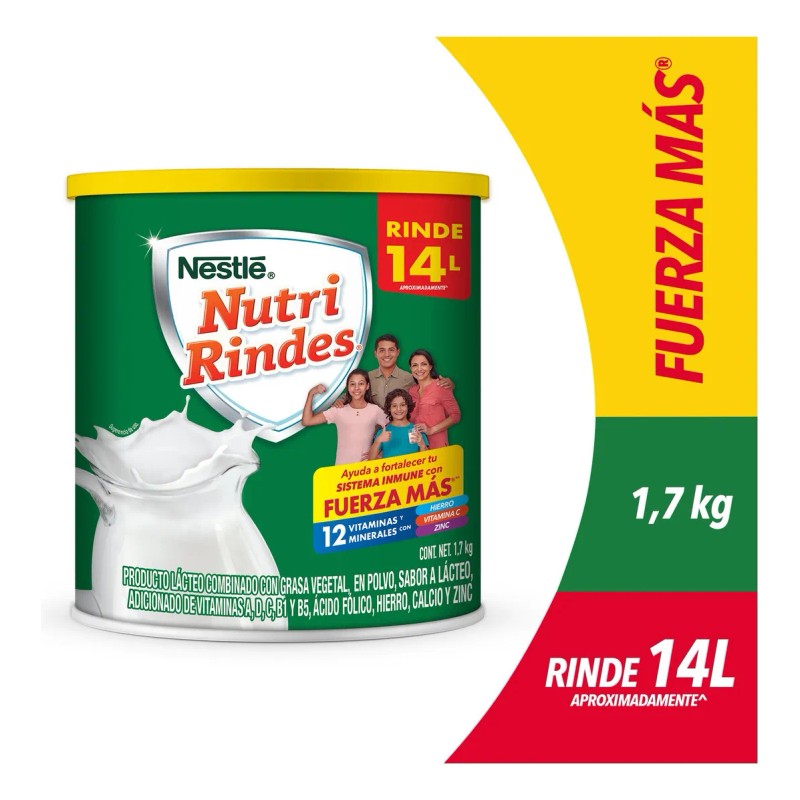 Nestlé Nutri Rindes es un lácteo en polvo fortificado que busca darle fortaleza todos los días a las familias mexicanas para que rindan en sus actividades diarias gracias a que contiene “Fuerza Más” que es una óptima combinación de nutrientes que ayuda a que estén más fuertes y despiertos, y que además, ayuda a que cuenten con un buen sistema inmune por su contenido y como parte de una alimentación correcta y un estilo de vida saludable.