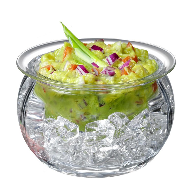 - Acrylic upper dip bowl (16 oz. ) nests inside stylish lower Acrylic ice bowl. Place cubed or crushed ice into lower bowl and position upper dip bowl so it makes good contact with ice.