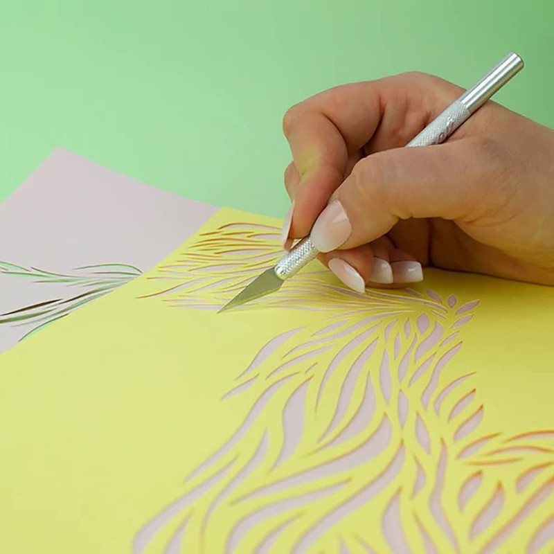 - 5" Aluminum handle with blade for fine angle cuts, carving, etching, piercing, scoring, scraping, scribing & trimming.
