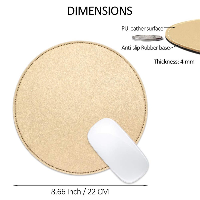 ProElife Premium-PU-Leder-Mauspad, 220 mm, rund, klein, wasserdicht, mit genähten Kanten und rutschfester Unterseite, für Zuhause, Büro, Gaming, Computer, Laptop, Mauszubehör (Gold)