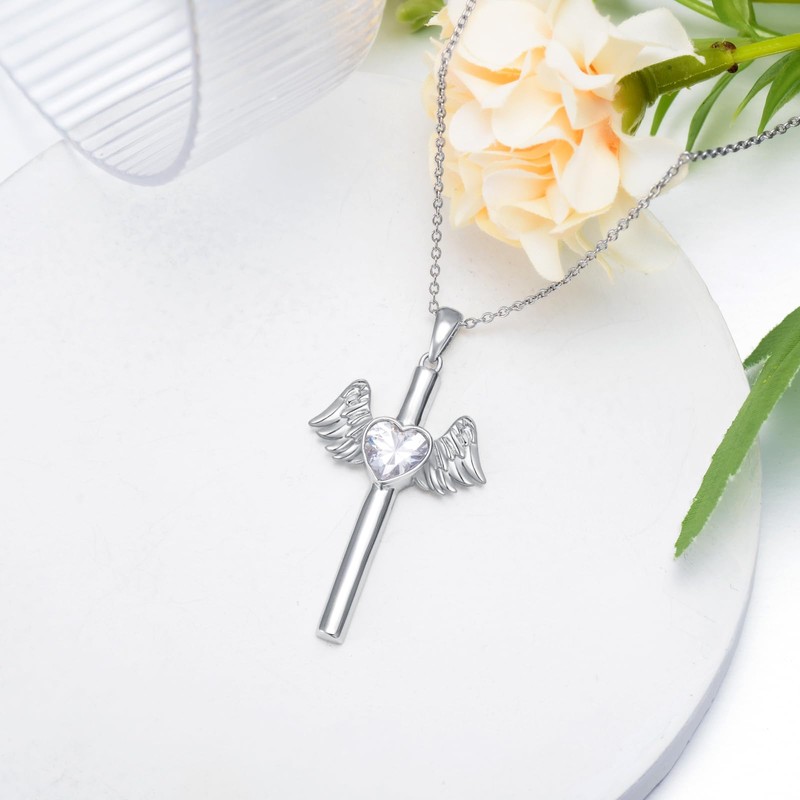 Cross Necklace Angel Wing Necklace for Women S925 Sterling Silver Angel Wing Pendant Birthstone Cross Jewelry Gift
