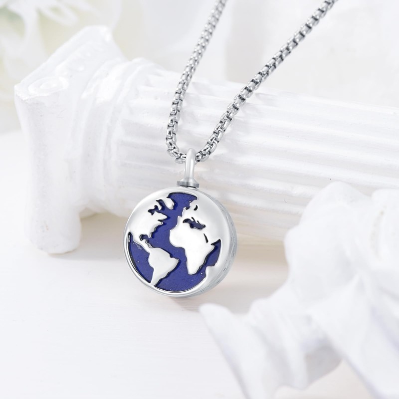 - 🤍Earth Cremation Necklace🤍This sterling silver planet earth necklace is for everyone who loves to travel the world! The World Map urn necklace can hold hairs, ashes, dry flowers and so on of treasured memories.