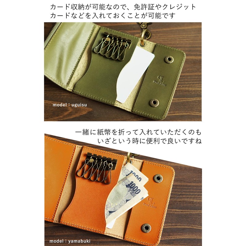 - Product Features: Key case made of Tochigi leather made in Japan. YKK zippers make opening and closing smooth. The hardware is unified in antique gold with an old feel. A convenient coin purse for your keys A simple tri-fold key case can be used for formal occasions. Key case with wallet function makes payments smart It comes with a card slot that can hold credit cards, driver's license, etc., so it is also equipped with 1 to 2 card cases. Leather products combine the functionality of a key case and coin case and card case for a minimalist look. The simple design makes this key case a cute glossy and glossy color that can be used for business occasions and both men and women