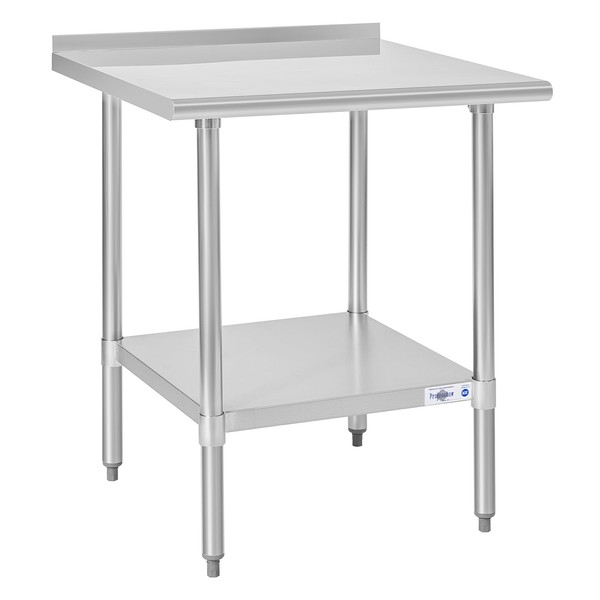 Profeeshaw Stainless Steel Prep Table NSF Commercial Work Table with Backsplash and Undershelf for Kitchen Restaurant 30x30 Inch