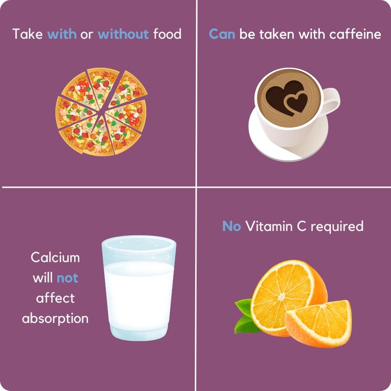 - 10.5 mg of iron as heme iron polypeptide in a dye free capsule