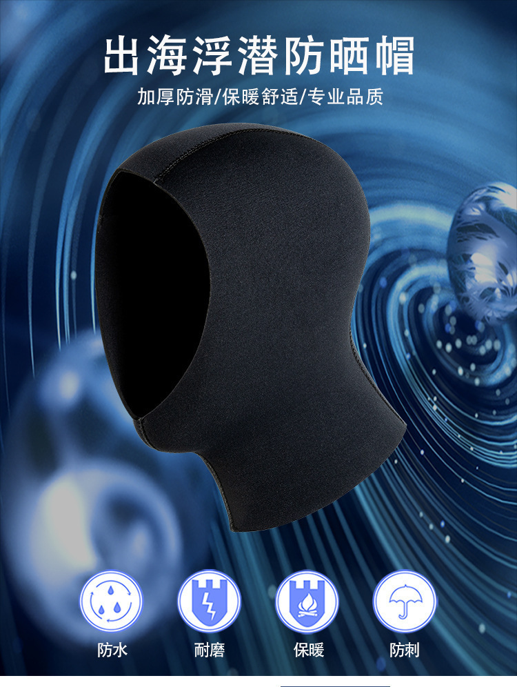 Professional 35mm a2 Crossover Diving, Surfing, and Scuba Swim Cap 3mm Black Dive Cap Headcover + M Code 3ea