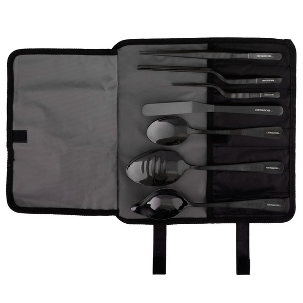 - đ„ă7 PCS KITCHEN PLATING TOOLSăThis high quality plated tool cooking professional set with 1 tool bag (bag size is 28.5 x 27 cm), 7 stainless steel kitchen tools: 1 sauce spoon, 1 large slotted spoon, 1 spatula, 3 kitchen tweezers and 1 tool for cleaning fish bones