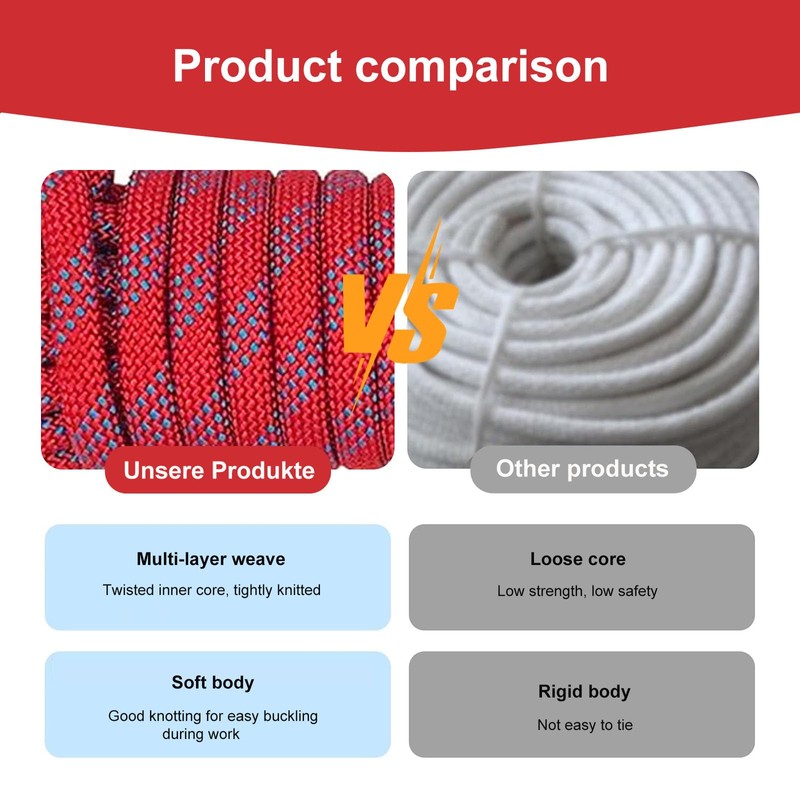 - 💖High-Quality Materials : The static rope is made of double braid core, except for the inner core, the rope also has braided cover to protect the kernel, which makes the cord super more firm than normal
