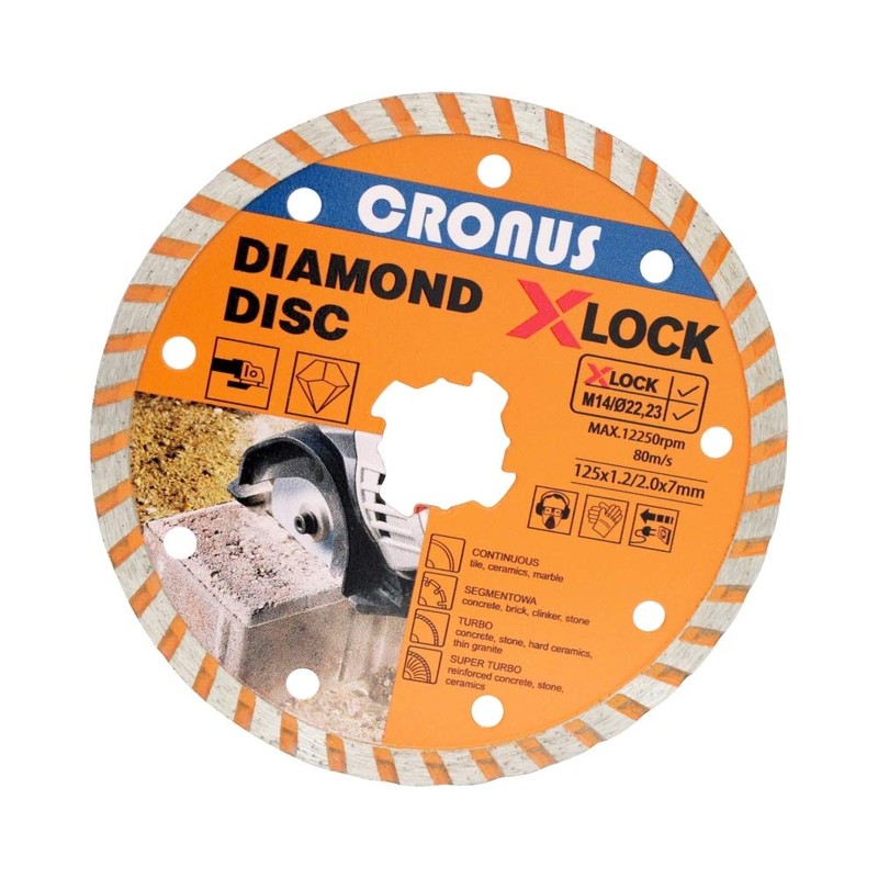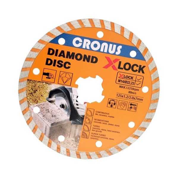 Professional Diamond Cutting Disc X-LOCK Diameter 125 mm in Various Designs and Sizes for Concrete with Segments