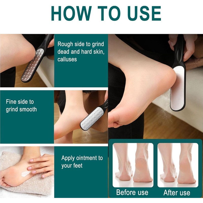 - Double-sided design: Features both a coarse and fine side to tackle different levels of calluses and rough skin.