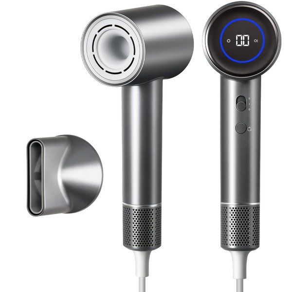 - 【Lightning-Fast Hair Dryer】:Powered by a 110,000 RPM ultra-quiet brushless motor, the XIYEM hair dryer delivers 23m/s airflow—drying hair up to 5X faster than traditional thermal hair dryers. It cuts drying time to under 5 minutes while reducing heat exposure to protect hair health.