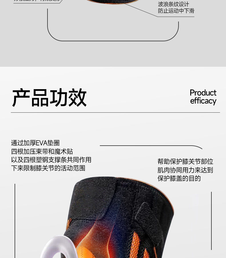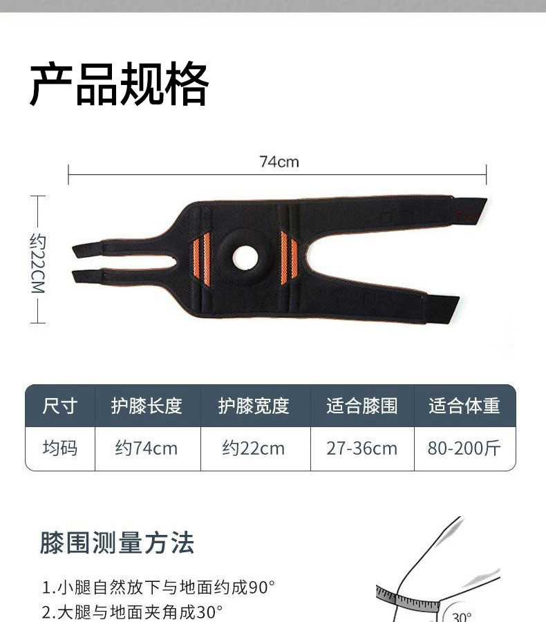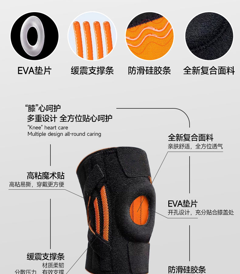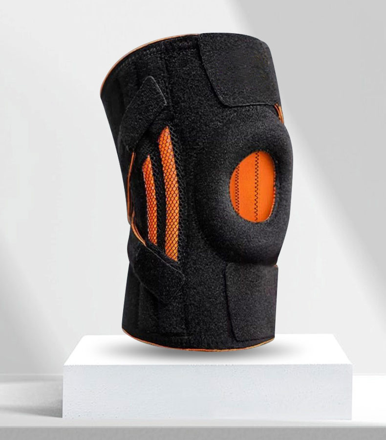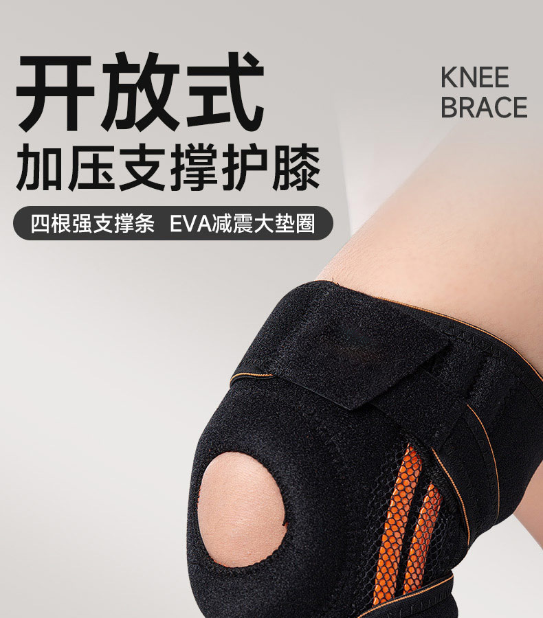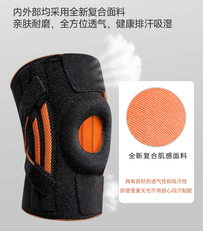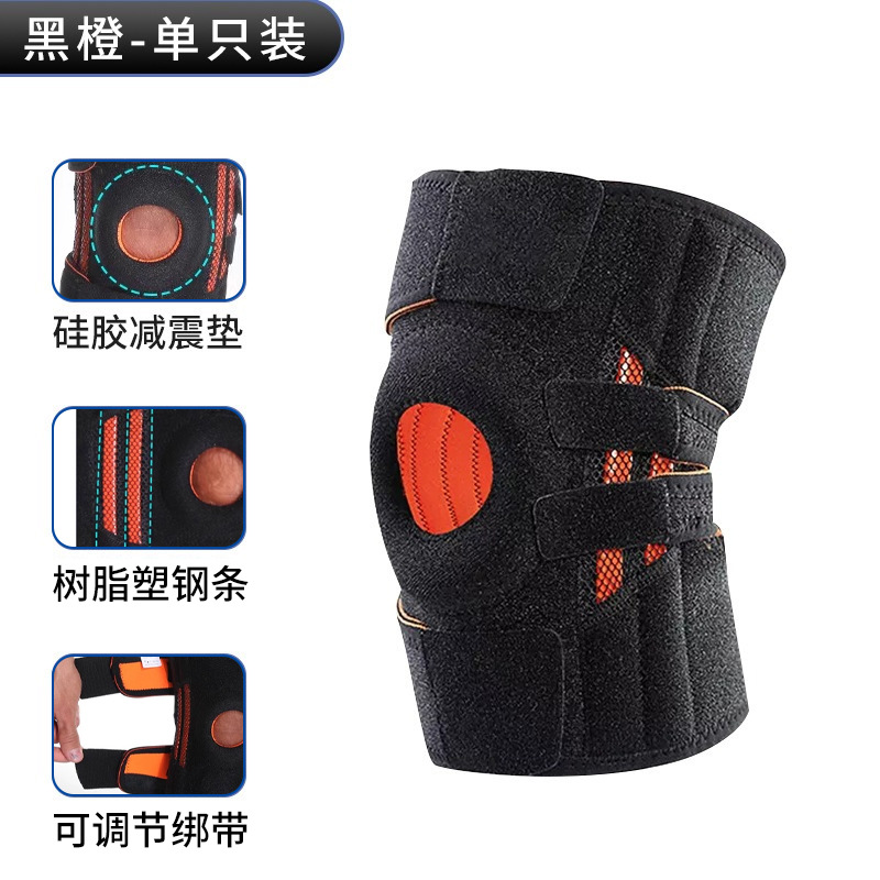 Professional Hiking Knee Protector with Meniscus & Cartilage Support, Open Spring Design (22x74cm) Black Orange (Single Pack) 10ea