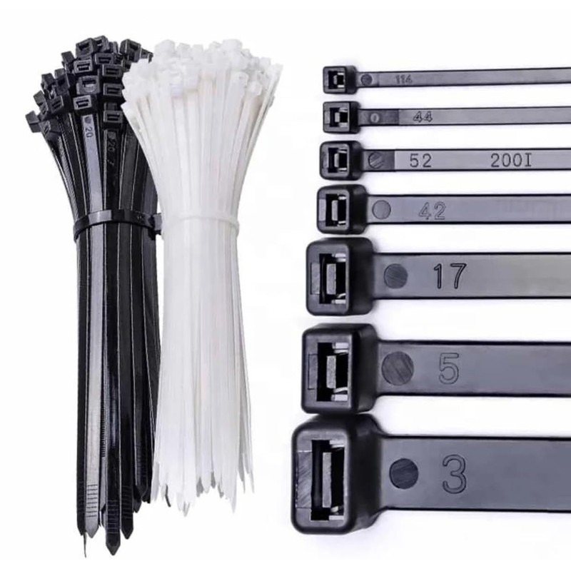 Professional Nylon Cable Ties in Black/White Pack of 100 Different Sizes - Extremely Tensile Strength (L 200 mm x W 2.5 mm, Black)