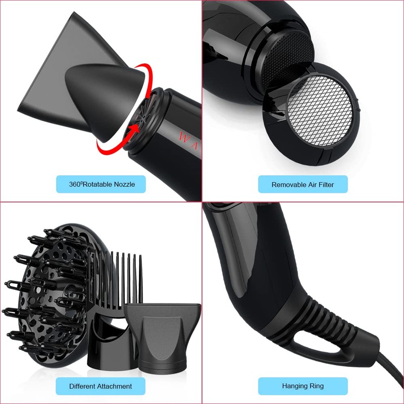 - Easy To Use:The blow dryer has 2.65m salon cable with safety hang loop , easy to use and store.