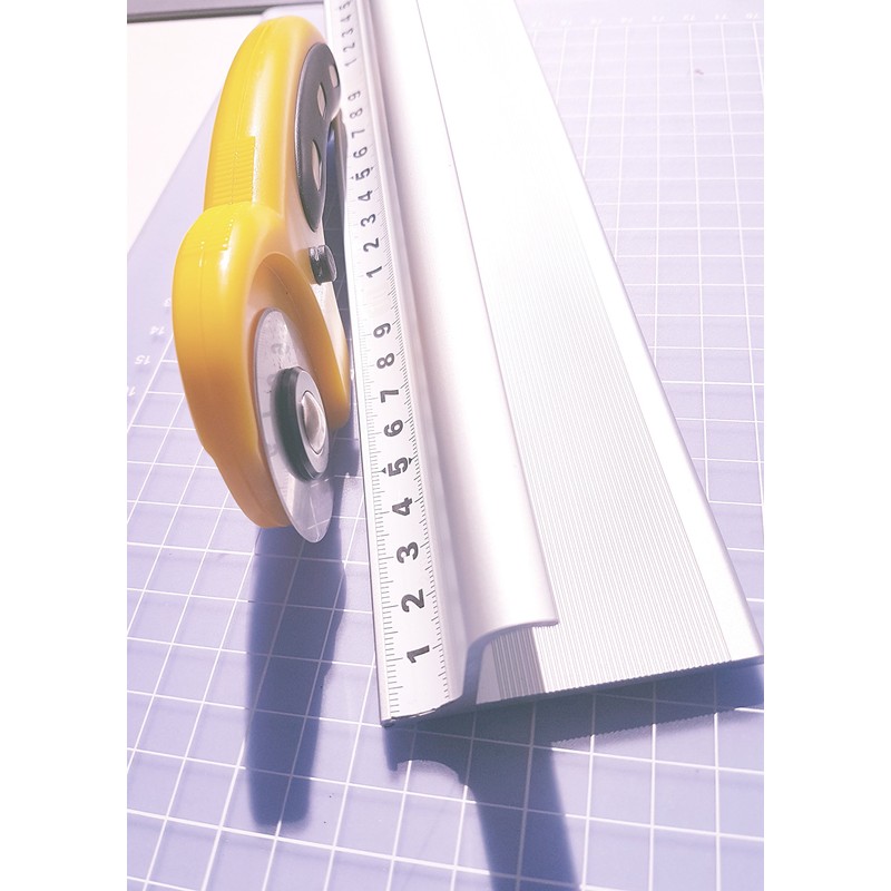 - Attractive look: the safety ruler is made of 4 mm thick aluminium. The integrated steel edge on the cutting side guarantees high stability and durability of the ruler and is equipped with a metric scale.