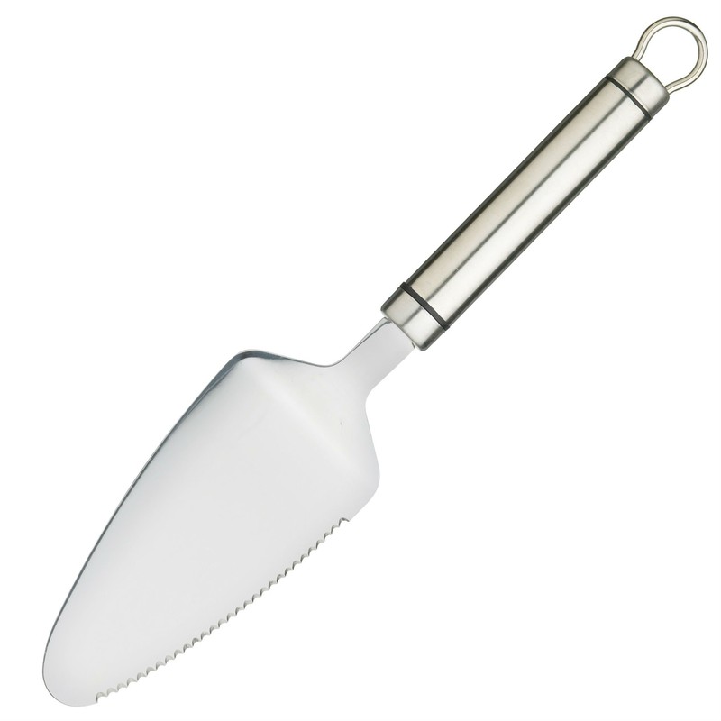 - Use the serrated edge to cut a slice, then lift it for serving with its flat edge. Its smooth handle provides control as you serve