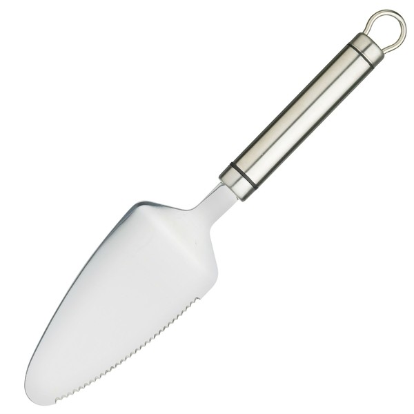 Kitchen Craft high quality stainless steel cake server, with a serrated blade to one side, a comfortable oval shaped handle, and an integral hanging storage loop. Features Dishwasher safe life time guarantee