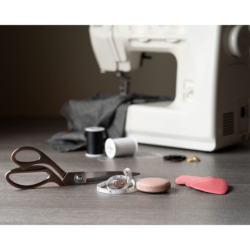 Professional Tailor & Dressmaker 9.5” Sharp Scissors for Cutting Heavy Fabrics & Leather + Measuring Tape & Tailor’s Chalk (Rose Gold)