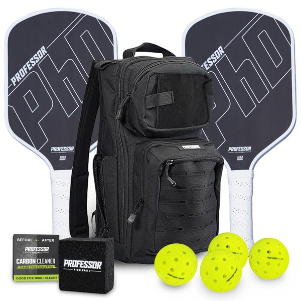 Professor PhD Raw Carbon Fiber Pickleball Paddle - 16MM - USA Pickleball Approved - Honeycomb Core - Power & Control:_PHD White Edge Bundle