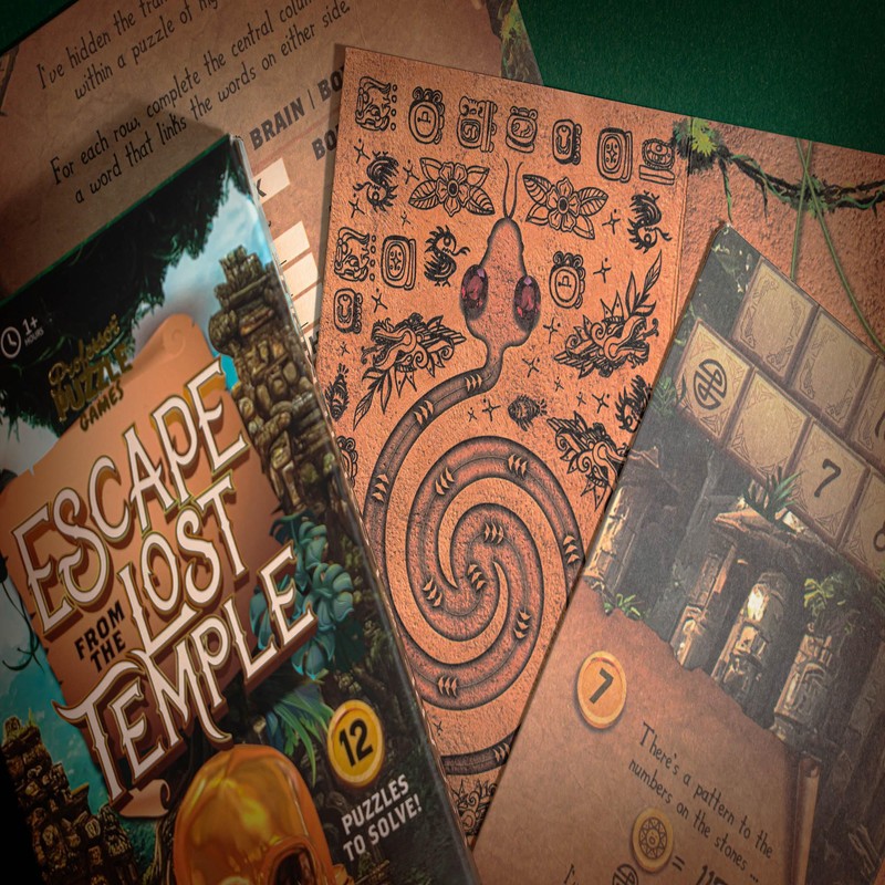 Professor Puzzle: Escape from The Lost Temple - Archeological Themed Escape Room Board Game, 12 Logic & Number Puzzles to Solve, Ages 12+, 1+ Players