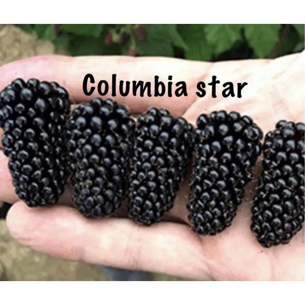 Columbia star is one of the best self-pollinating blackberry varieties available because of its huge yield, sweet fruit, cold hardiness, resistance to cane blight and, of course, lack of thorns. Huge berries! The fast-growing canes are sturdy, but still require a little support as they can reach up to 10′ long. Zones 5-9.