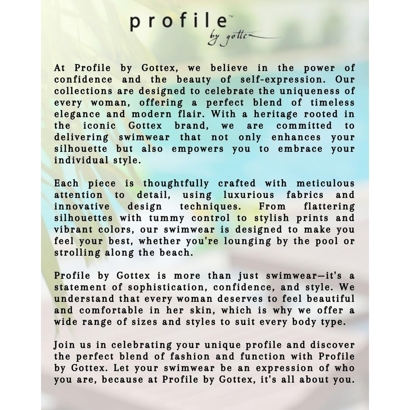 - Versatile Style to Complete Your Swim Ensemble: These high waist bottoms can be mixed and matched with any Profile by Gottex bikini top or tankini for a cohesive and stylish beach look. The bottoms are sold separately, allowing you to customize your swimwear collection with ease.