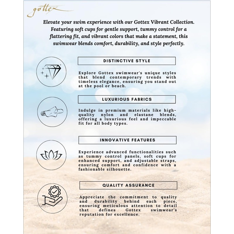 - Tummy Control and Soft Cup Support : Feel confident and comfortable with our built-in soft cups and tummy control panel. The soft cups offer gentle shaping and ample support for your bust, while the tummy control feature smooths and flatters your midsection, enhancing your natural silhouette.