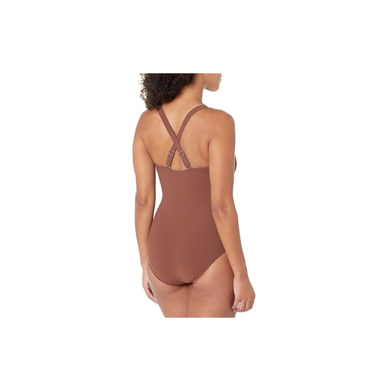Profile by Gottex Women's Standard Iota D-Cup Round Neck One Piece, Dark Brown