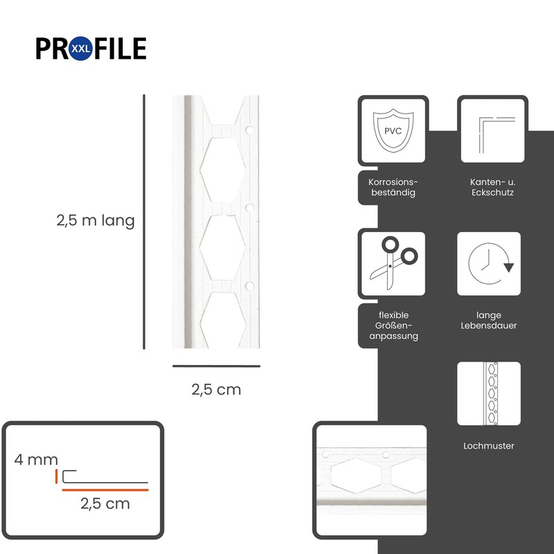 ProfileXXL PVC End Profile, End Strip, Edge Protection, 2.5 m, White, 25 x 4 mm Plaster Rails Made of Hard PVC, for Indoor and Outdoor Plaster